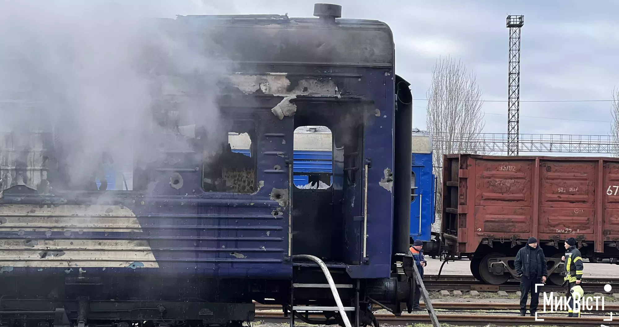 Нагадаємо, що у Миколаєві вранці 4 березня російський дрон впав на залізничну колію. Внаслідок цього загорівся пасажирський вагон потяга, який перебував на пероні.