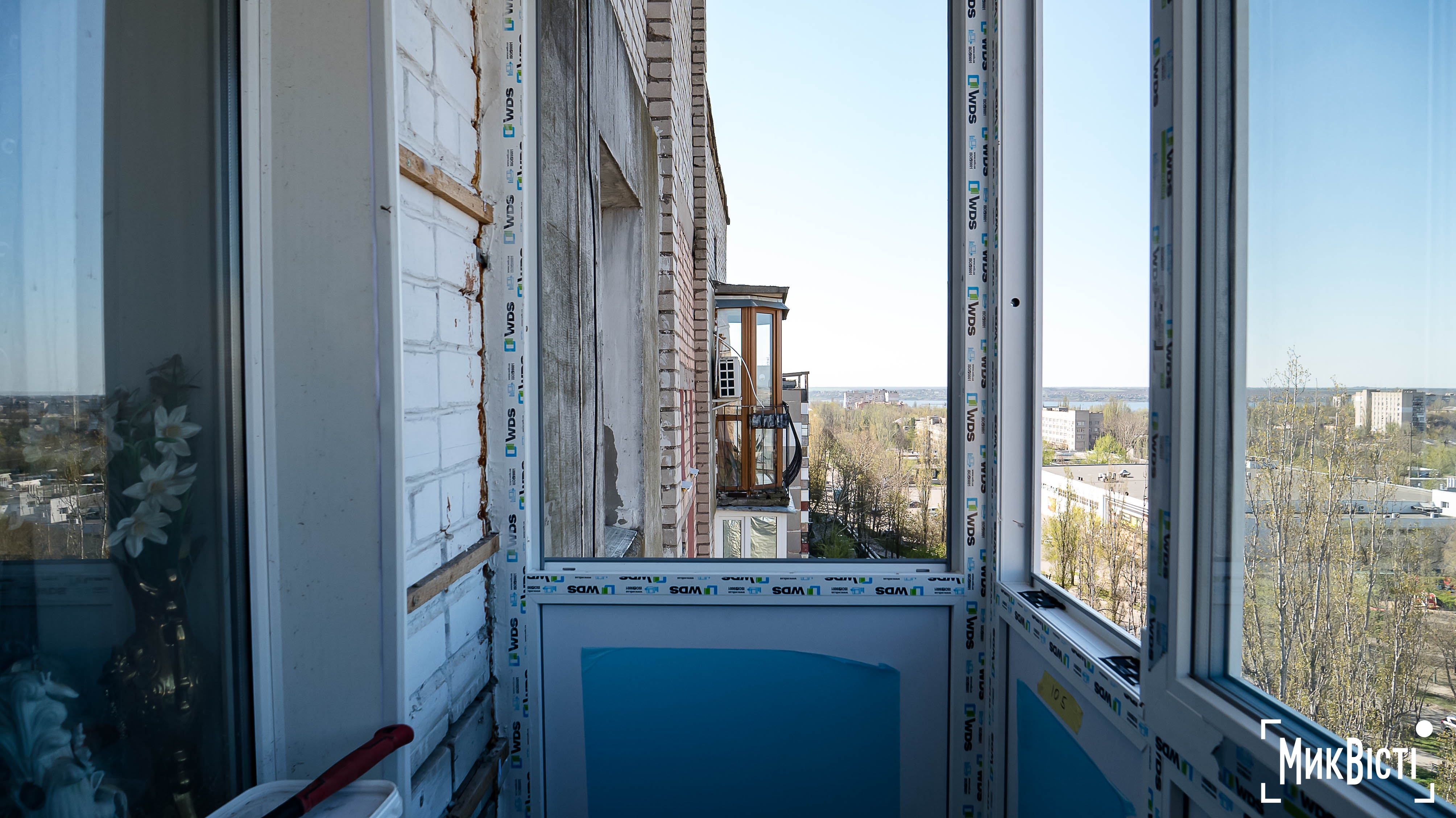 Відновлені вікна та балкони в одному з житлових будинків у Корабельному районі, квітень 2025 року, фото: «МикВісті»Після двох років повномасштабної війни у Миколаєві почали з’являтися перші приклади системного відновлення житлової інфраструктури. Частину робіт бере на себе місто — технічні обстеження, тендери, ремонт дахів і комунікацій. Більші інфраструктурні проєкти — міжнародні партнери, зокрема уряду Данії та UNOPS.