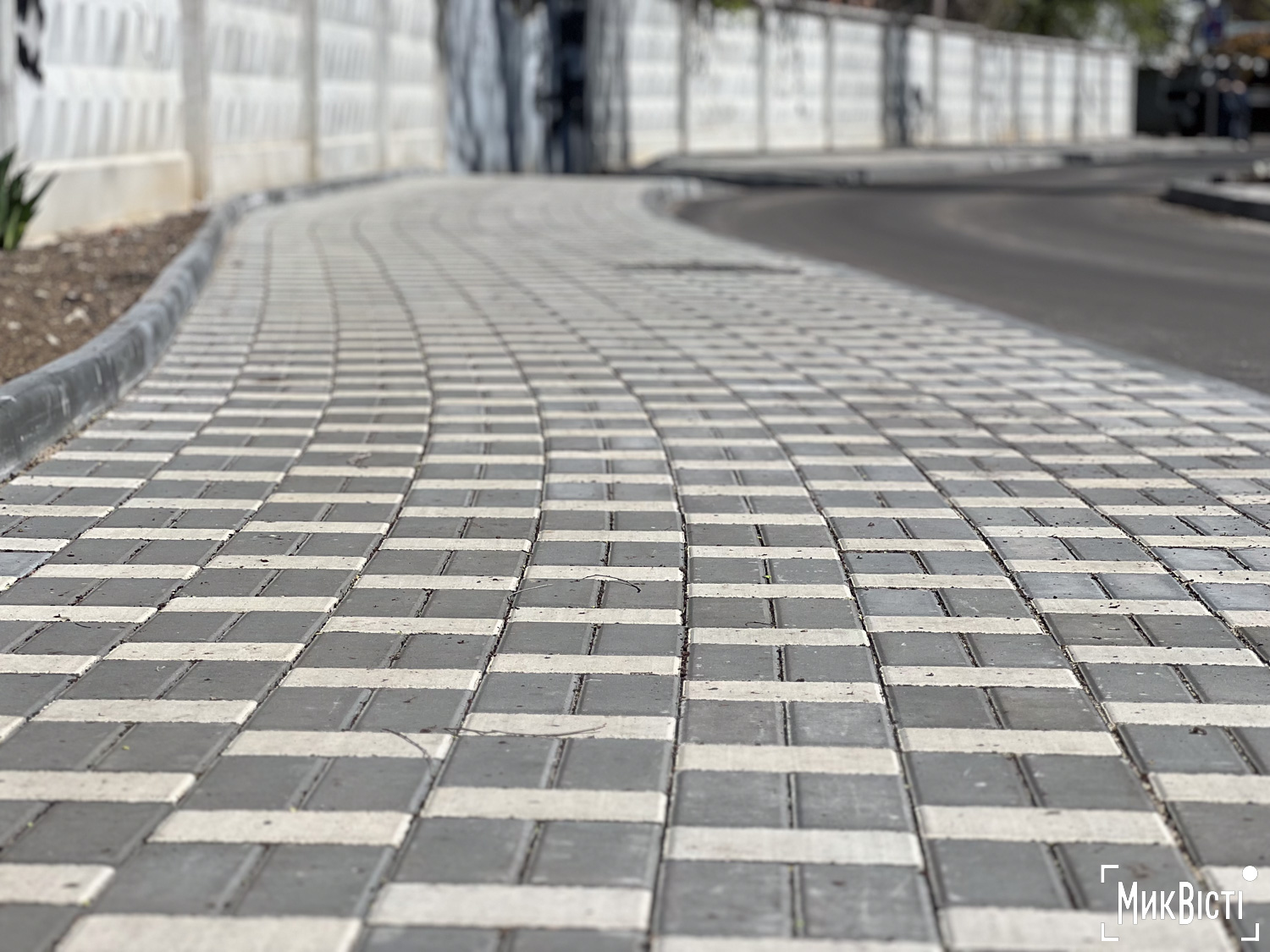 Облаштована тротуарна доріжка біля одного з житлових будинків у мікрорайоні Ліски, квітень 2025 року, фото: «МикВісті»Фінансує відновлення житлових кварталів уряд Данії. Але ідею відновлення цих кварталів запропонувала міська рада, пояснив у коментарі «МикВісті» керівник Офісу Посольства Королівства Данія в Миколаєві Якоб Хансен.