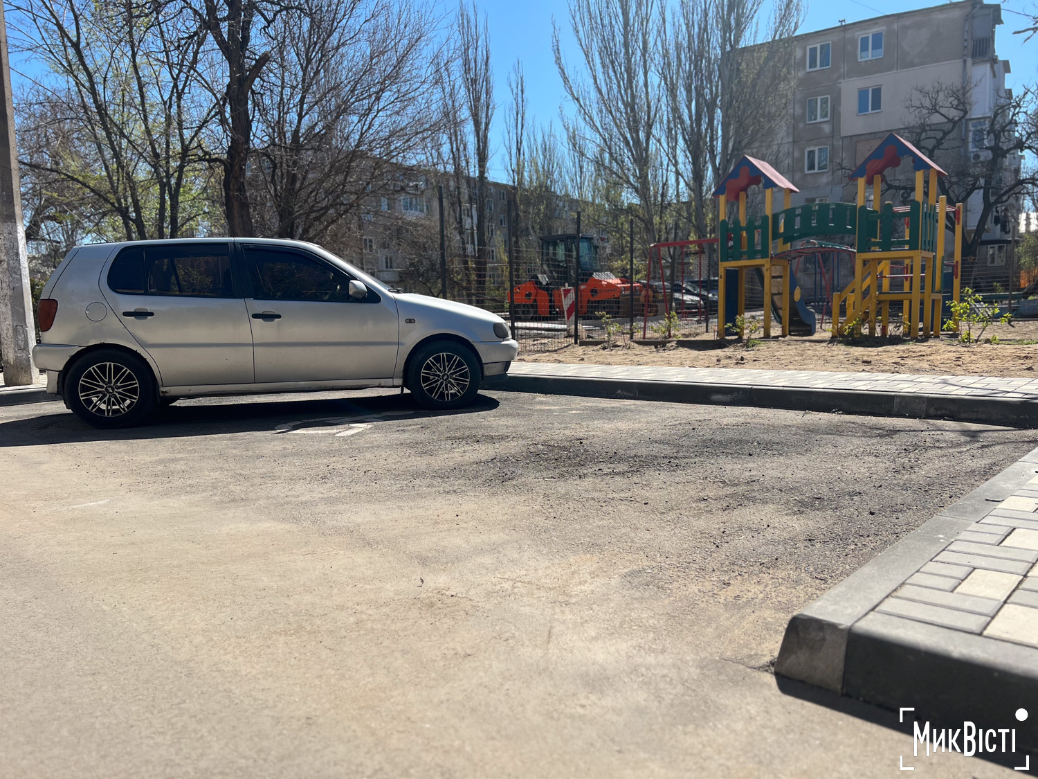 Облаштована парковка біля одного з житлових будинків у мікрорайоні Ліски, квітень 2025 року, фото: «МикВісті»Ще одна мешканка мікрорайону каже, що окремі стоянки, які облаштували у Лісках, можна було зробити більш місткими, оскільки площа навколо дозволяла такі роботи.