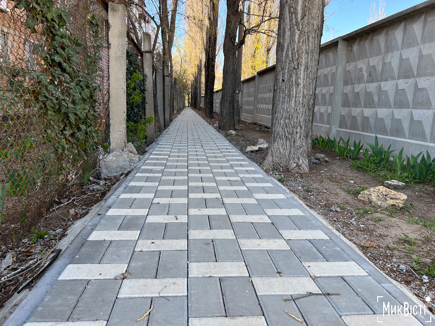 Облаштована тротуарна доріжка біля одного з житлових будинків у мікрорайоні Ліски, квітень 2025 року, фото: «МикВісті»