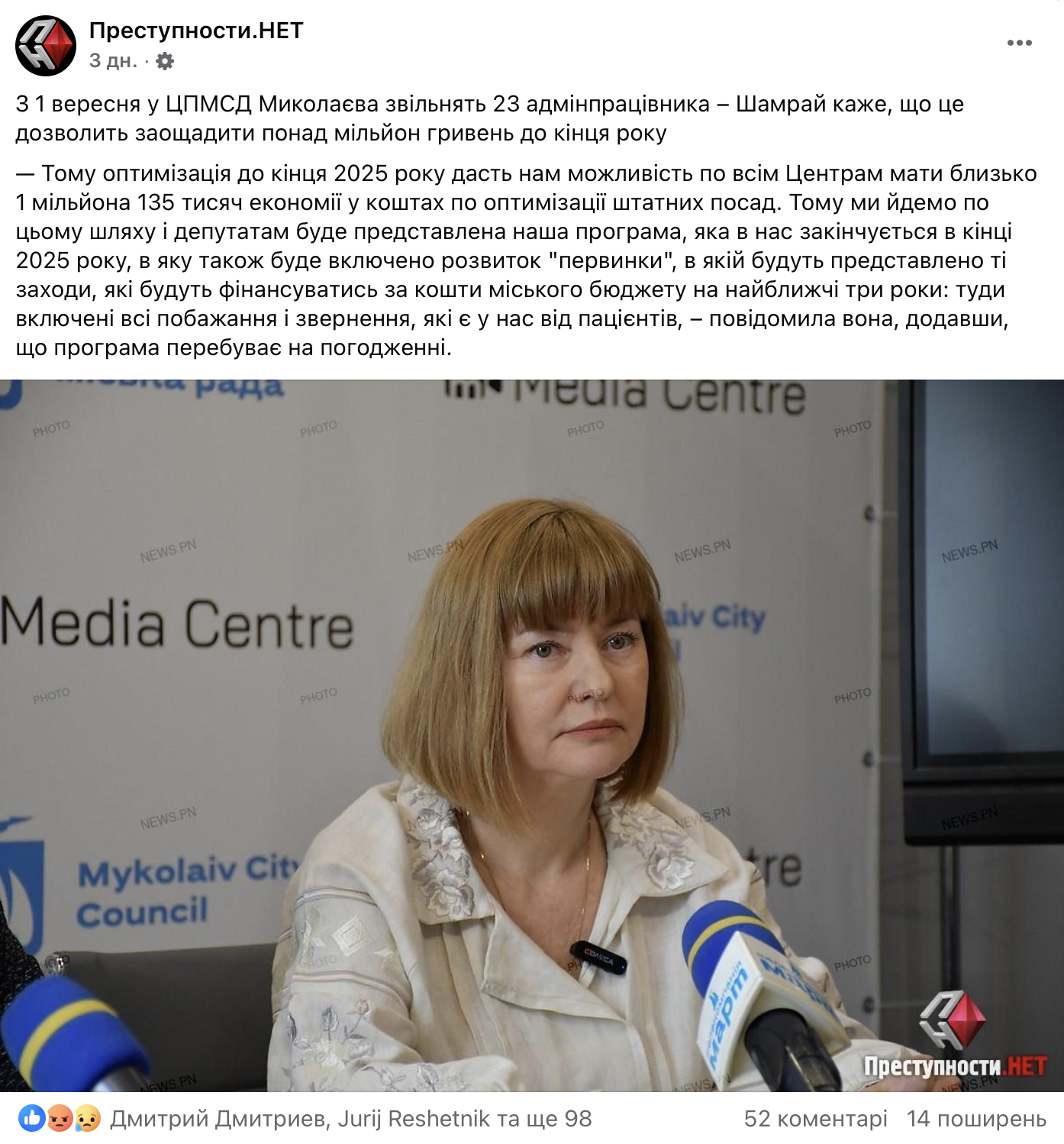 Публікації Преступности.НЕТ у Фейсбуці збирають десятки та сотні коментарів, скрин одного з таких постівЗа словами Чубаченка, редакція наразі зосереджена на трьох платформах — Фейсбук, Інстаграм та Телеграм.