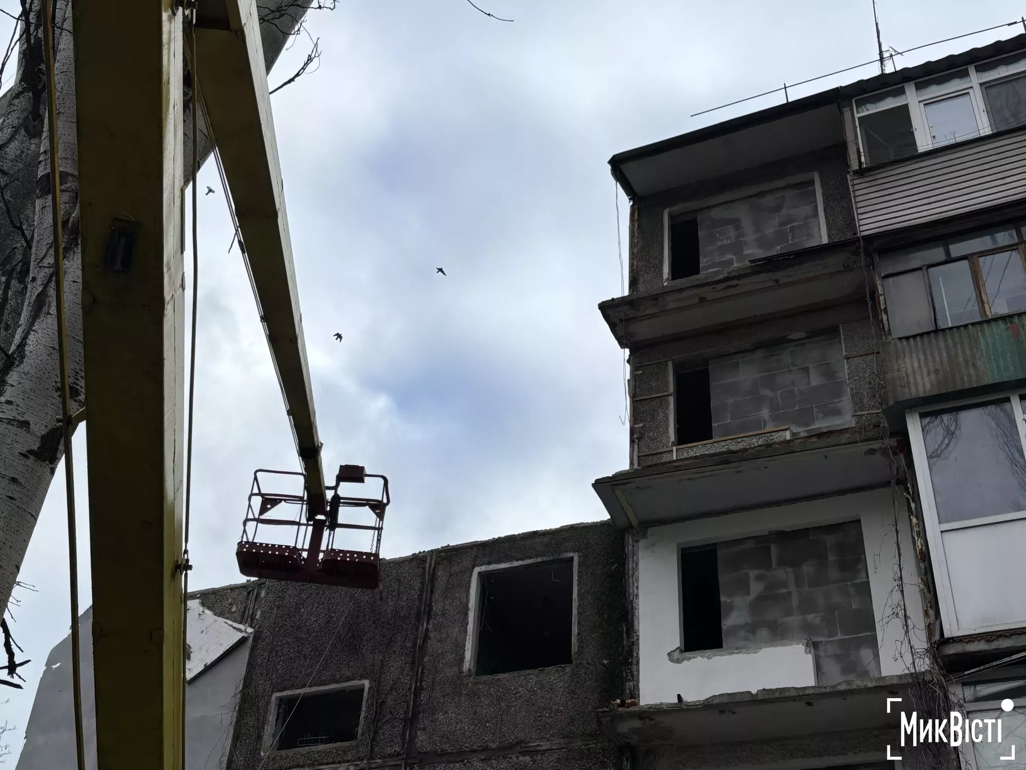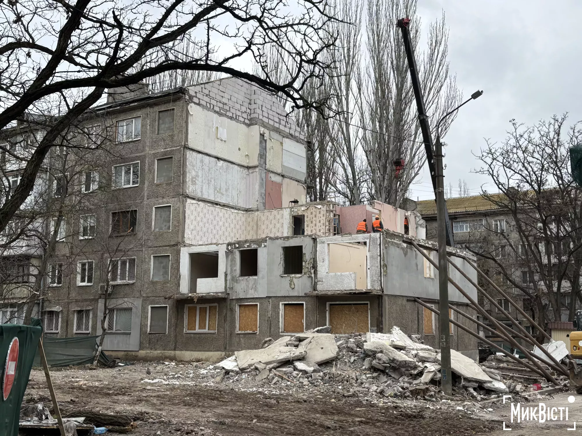 Dismantling of a high-rise building in the Inhulskyi district of Mykolaiv, 24 December 2025. Photo: NikVestiIn the Inhulskyi district of Mykolaiv, the entrance of a five-storey building at 87 4th Pozdovzhnia Street, where a gas explosion occurred in the spring, is being dismantled. Residents who lost their apartments still do not know whether they will receive compensation.