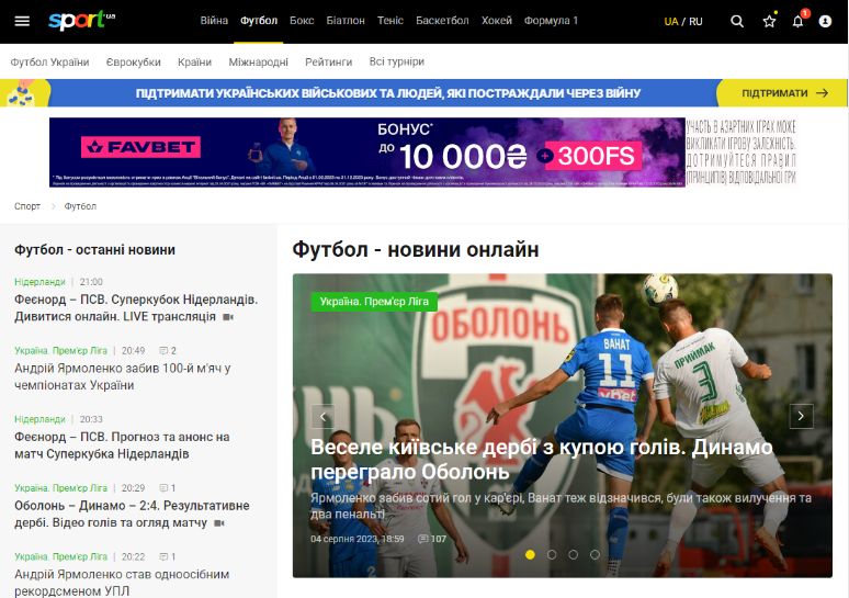 Огляд Sport.ua: футбол та інші види спорту у зручному форматі