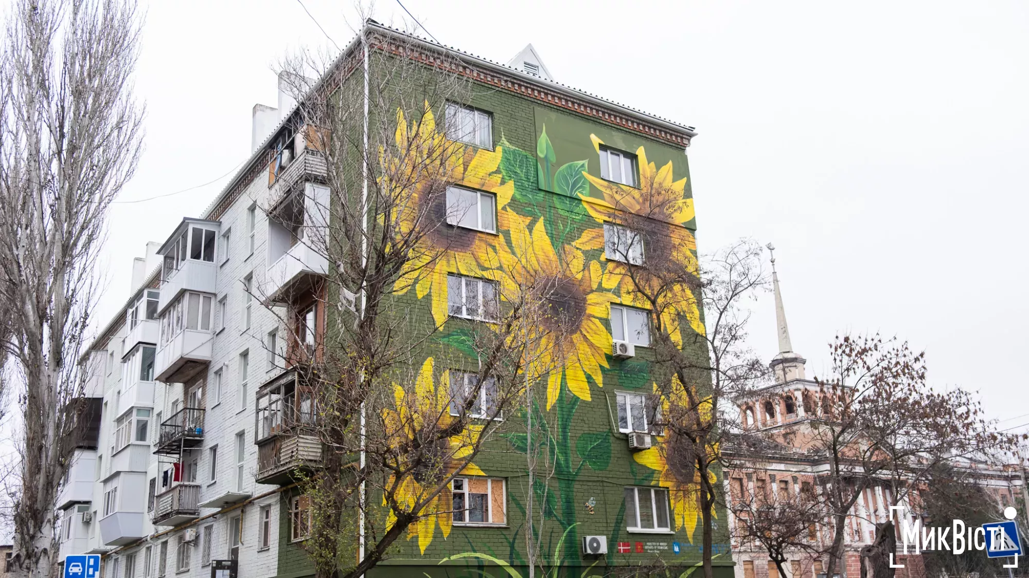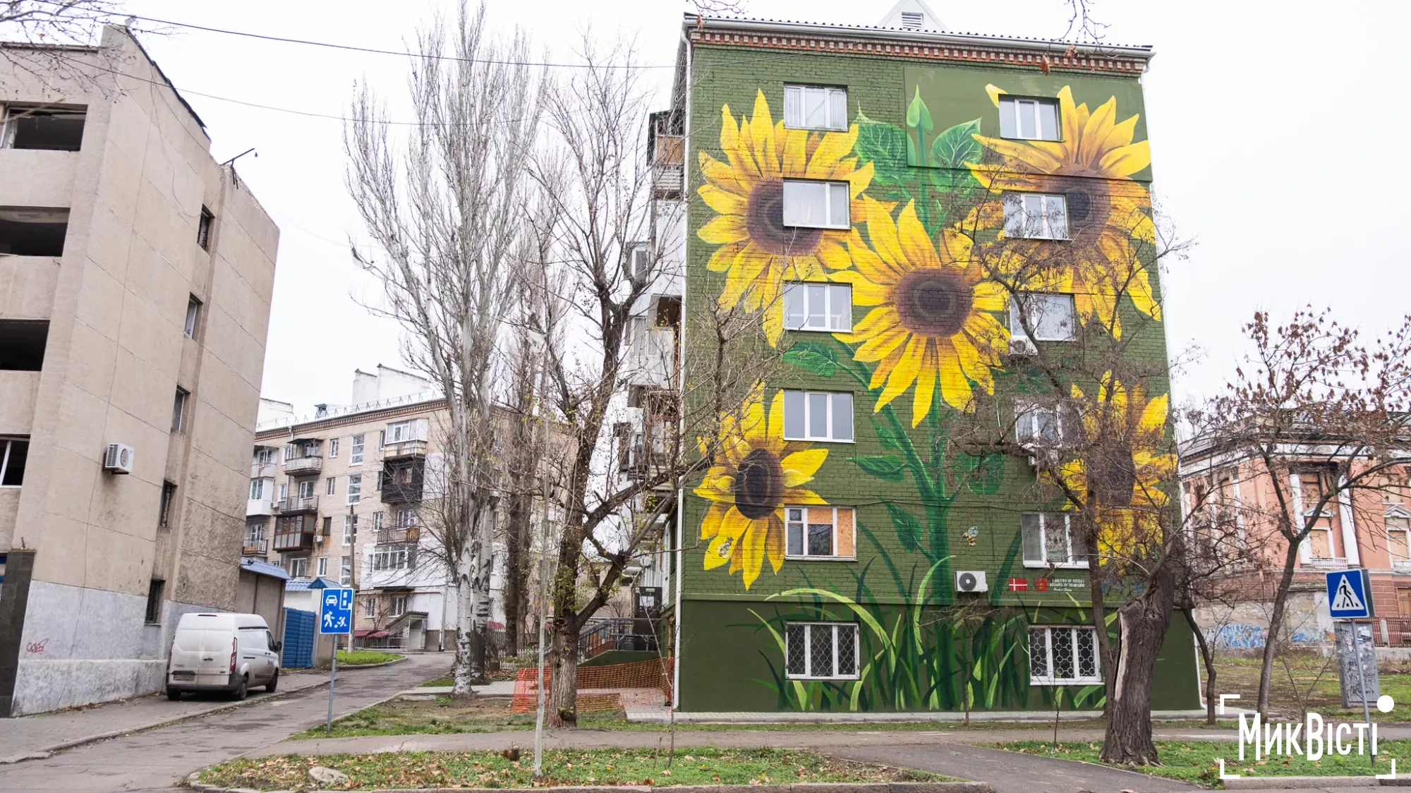 У Миколаєві на фасаді одного з відновлених будинків з’явився новий мурал із соняшниками.