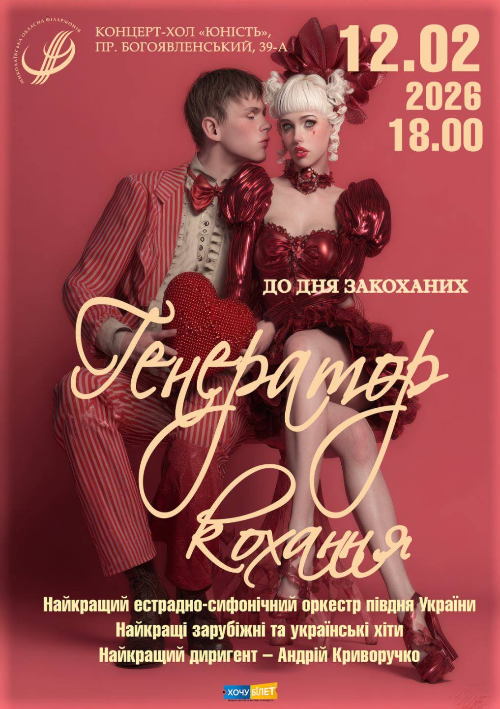 12 лютого, четвер, 18:00 — концерт до дня закоханих «Генератор кохання»