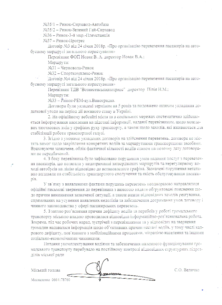 Зазначимо, що у сюжеті «Суспільне.Миколаїв» Мурман Піпія, директор «ВознесенськАвтотранс», повідомив, що головна проблема нестача водіїв.