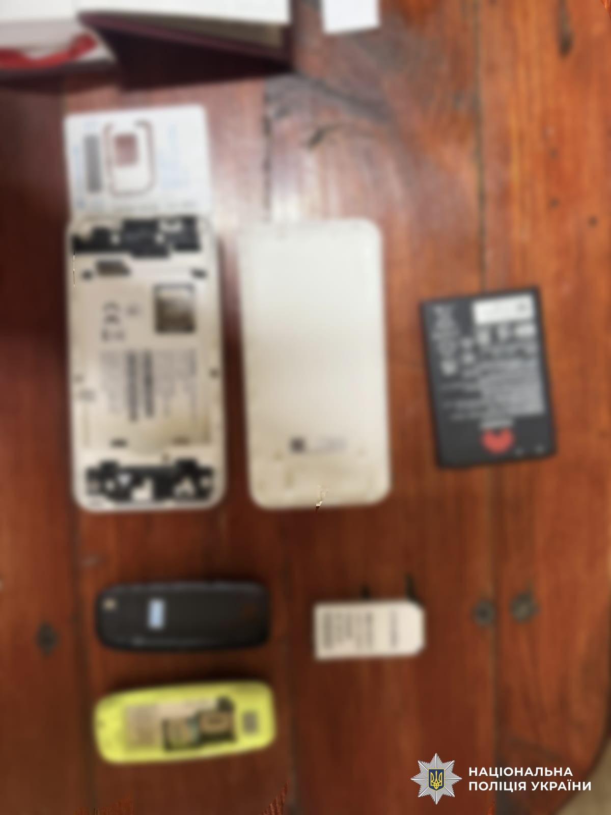 Правоохоронці провели санкціоновані обшуки у виправній колонії та за місцями реєстрації обвинувачених, під час яких вилучили мобільні телефони, сім-картки та чорнові записи.