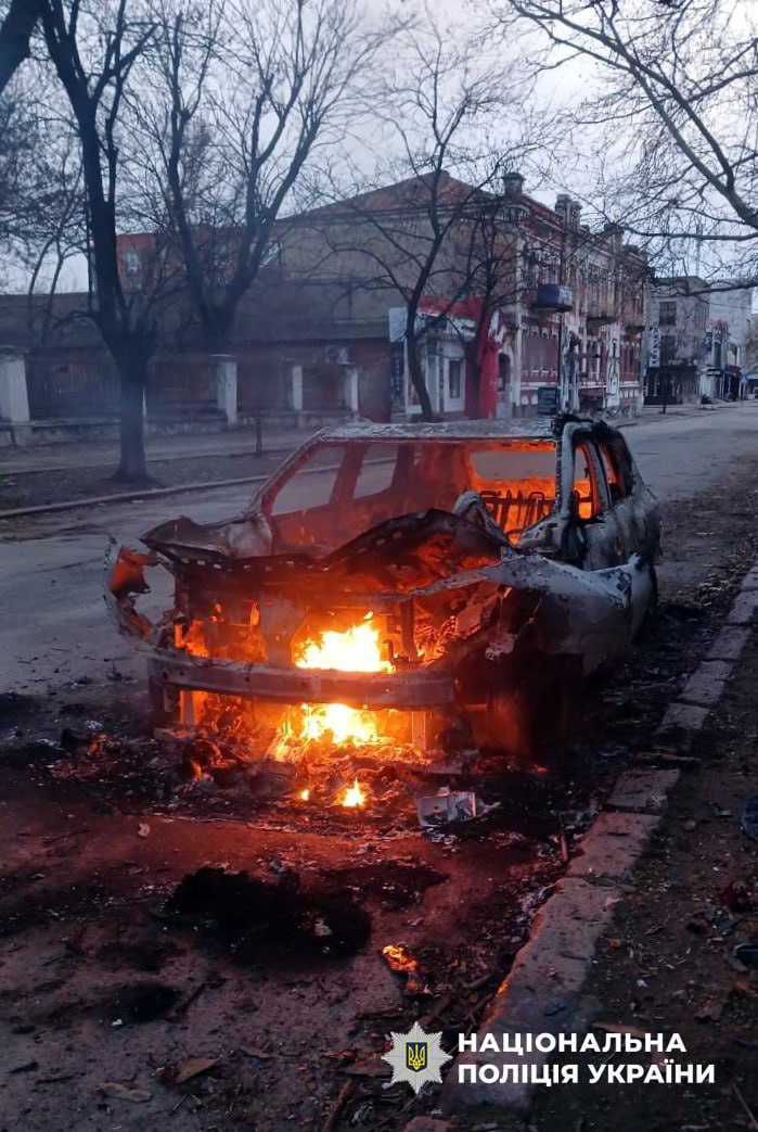 Як повідомили в Національна поліція України, близько 17:00 військові РФ атакували службовий автомобіль поліції в центральній частині міста. Унаслідок удару FPV-дроном поранення отримав 48-річний старший інспектор з особливих доручень одного із секторів ГУНП у Херсонській області.