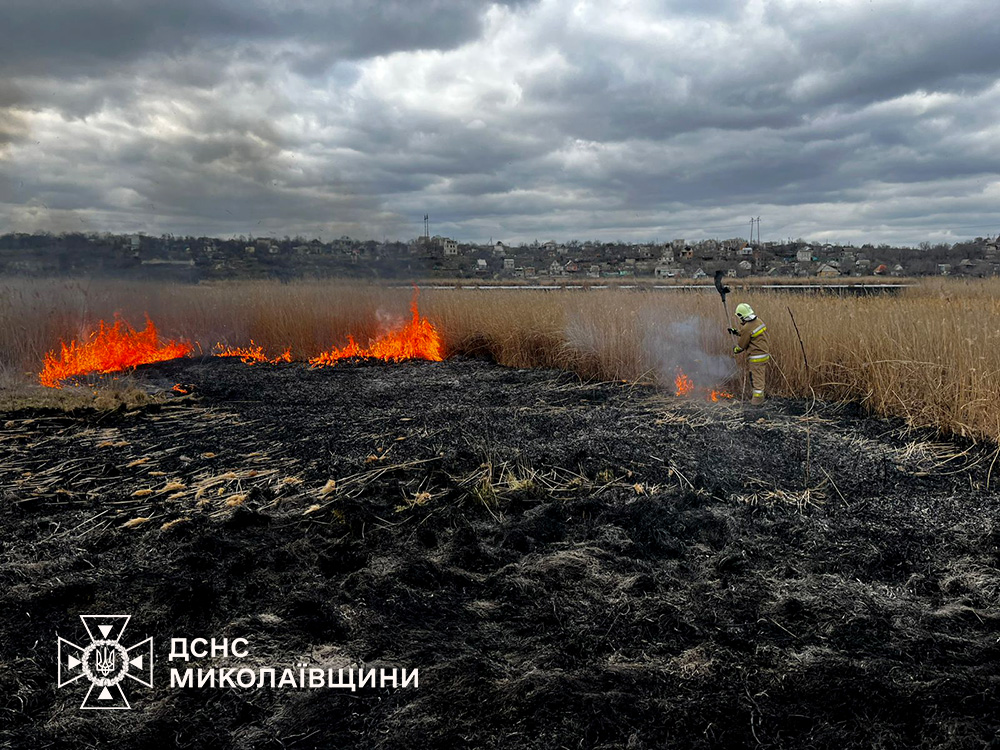 Очерет і суху траву гасили у Мішково-Погорілівській та Костянтинівській територіальних громадах Миколаївського району, а також у містах Вознесенськ, Первомайськ і Миколаїв. Загальна площа пожеж склала понад 1 гектар.