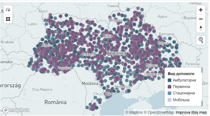 Як зазначається, на мапу нанесено усі медичні заклади, які мають договір із Національною службою здоров’я України (НСЗУ) про надання психологічної та спеціалізованої допомоги з ментального здоров’я.
