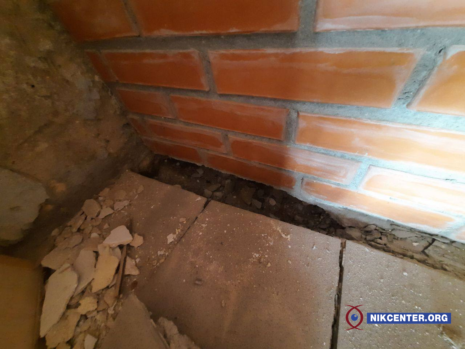 — Для того, щоб вирити котлован, вони знесли опорну стіну, знесли опори кам’яні, які тримали ці дві стіни. Там велика арка на весь коридор. Вони заклали це. Це був кінець 2020 року. З січня 2023 року почало все валитися. Маленька тріщинка, приходимо через два тижні вже велика тріщина, ще через тиждень прийшли — вже перший камінь впав. На другому поверсі валиться кухня: повело вікно, гранітне підвіконня луснуло навпіл, починає провалюватись підлога, відпадає плитка, і вже немає світла, — бідкаються люди.
