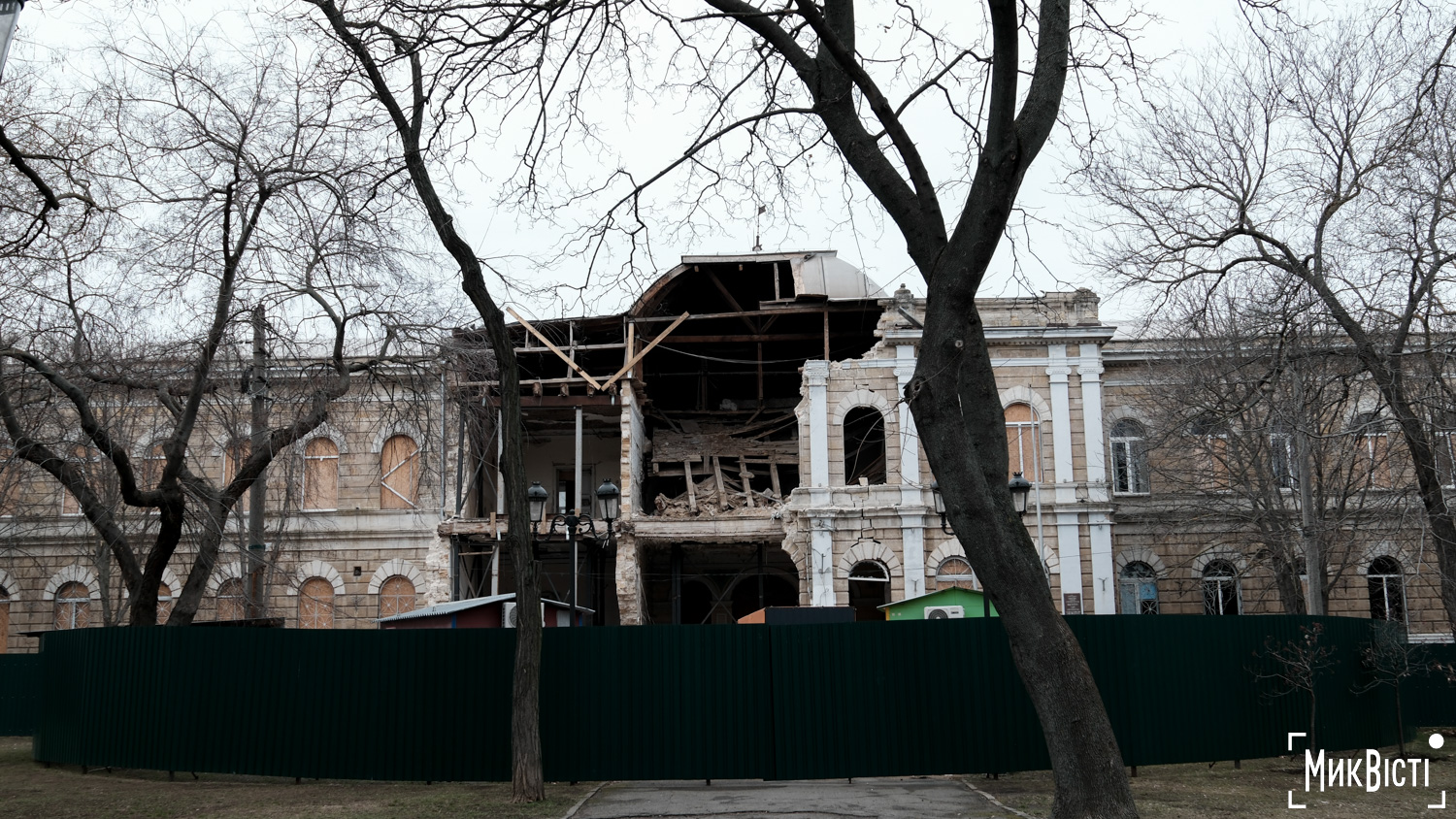Читайте також статтю «МикВісті» «Не втратити будівлю. У Миколаєві почали відбудову гімназії Аркаса». Відновити зруйнований фасад будівлі планували до жовтня 2025 року.