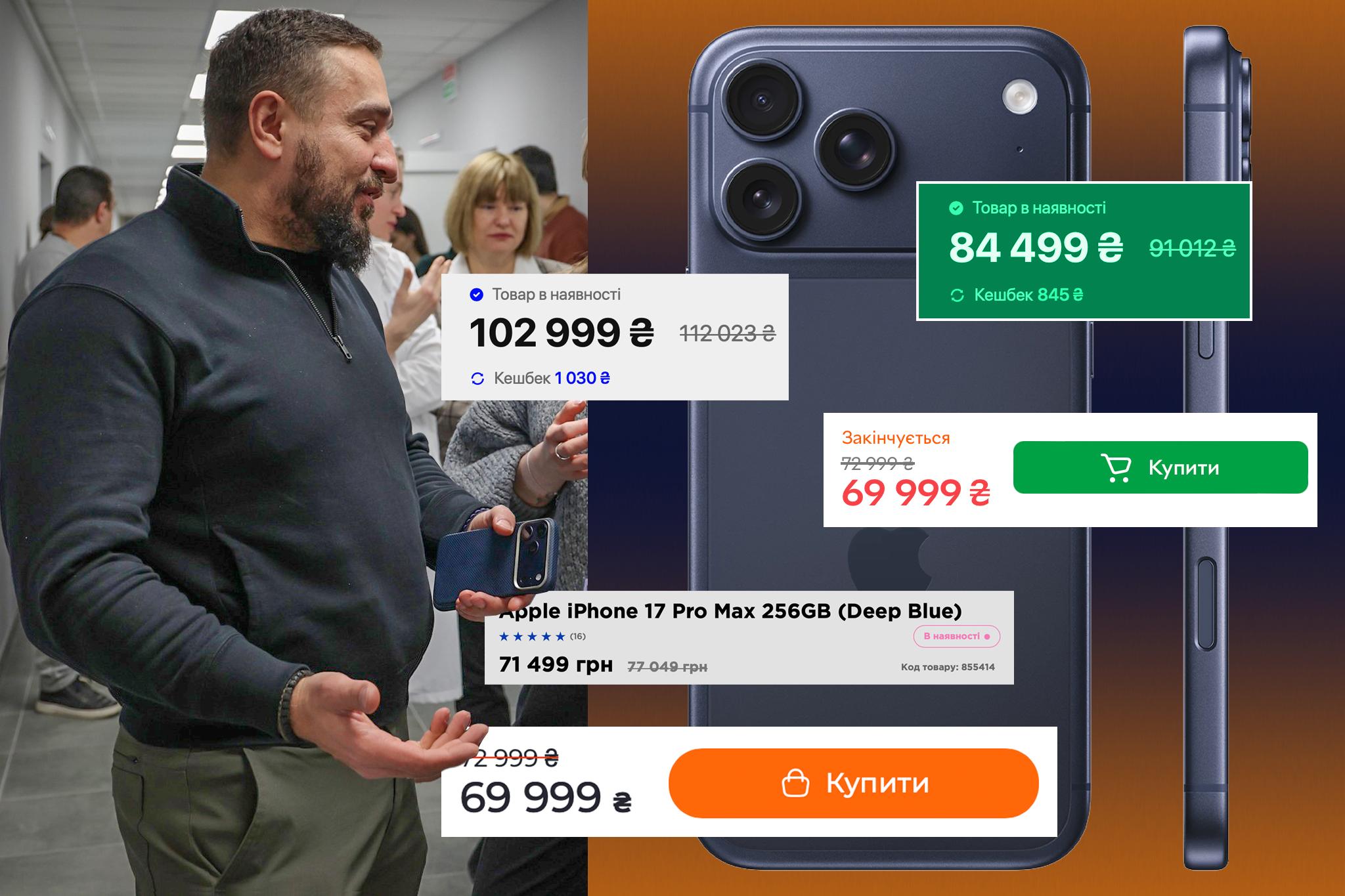 Скриншот цін на телефон від офіційного реселера Apple в Україні store.iland.ua. Товар під замовлення, тому ціни найнижчі. Інші інтернет-магазини з товаром «у наявності» продають iPhone дорожче на 10-15%.Водночас згідно з інформацією про доходи посадовця за 2025 рік, його посадовий оклад становить 21 895 гривень на місяць.