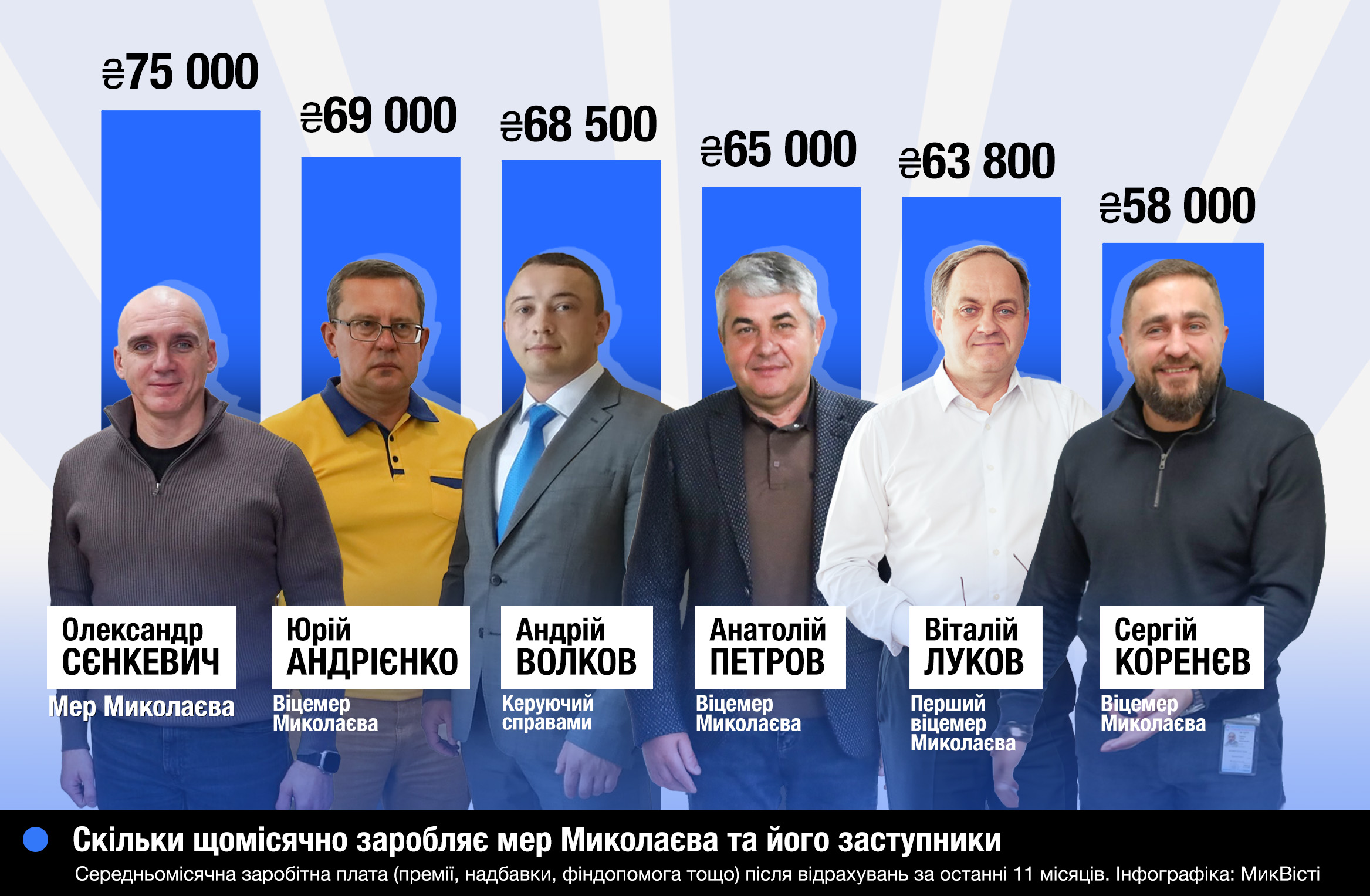 Крім того, наприкінці 2025 року мер Миколаєва Олександр Сєнкевич заявив, що проблема низьких зарплат у міській раді є гострою. Різниця між оплатою праці посадовців місцевого самоврядування та державних службовців сягає 50–100%, сказав він. Тому, пояснив мер, підвищити зарплати посадовцям можуть лише за умови фінансової допомоги з державного бюджету.