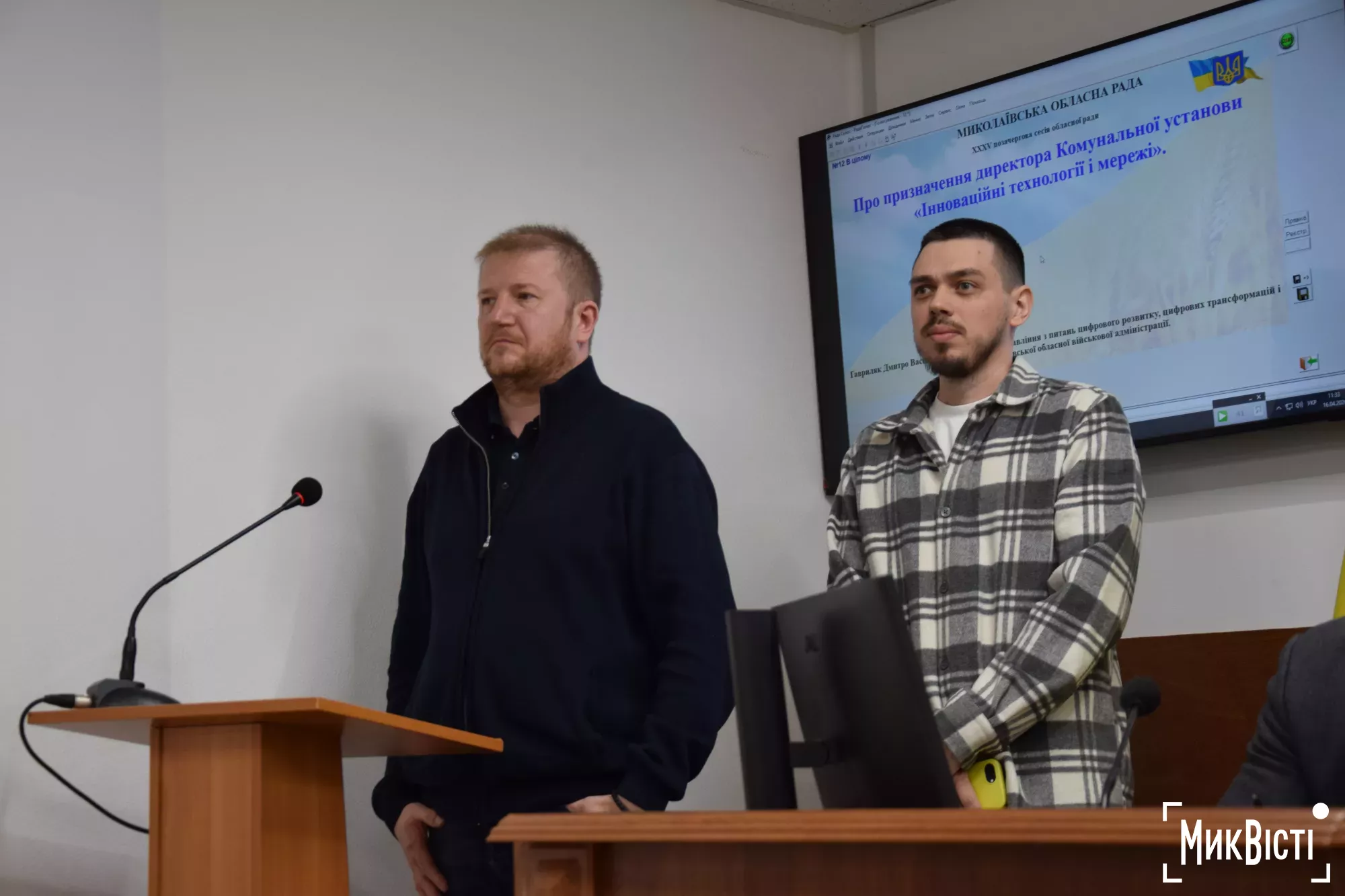 Начальник управління з питань цифрового розвитку, цифрових трансформацій і цифровізації Миколаївської ОВА Дмитро Гавриляк справа. Фото: НикВестиНачальник управления по вопросам цифрового развития, цифровых трансформаций и цифровизации Николаевской ОГА Дмитрий Гавриляк справа. Фото: НикВести
