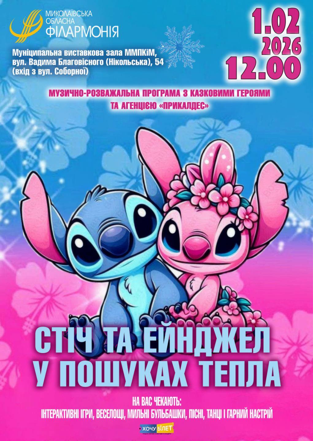 1 февраля, воскресенье, 12:00 — музыкально-развлекательная программа «Стич и Энджел в поисках тепла»