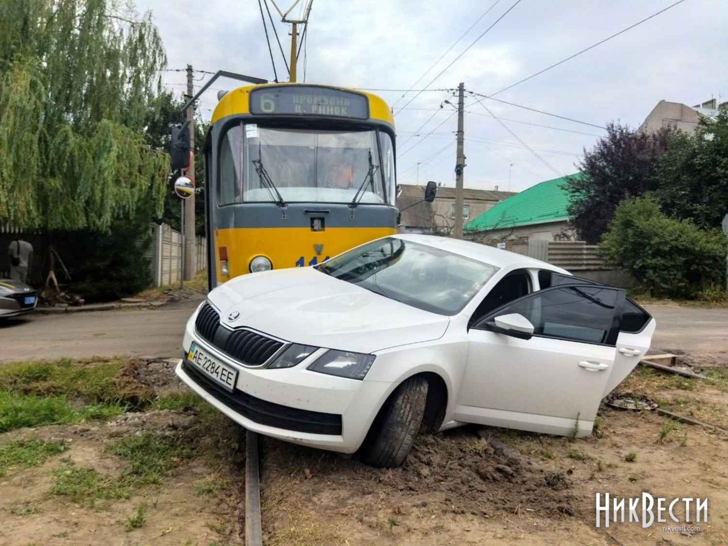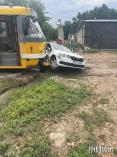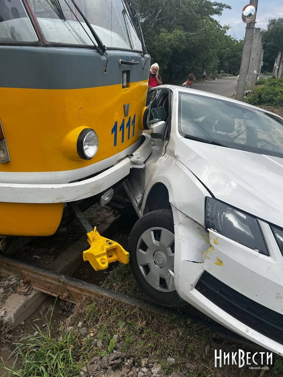 В Николаеве Škoda заехала на пути, в нее врезался трамвай