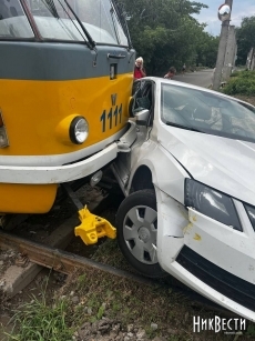 Днем 22 июля в Николаеве на перекрестке улиц Скульптора Измалкова и 7-й Продольной произошло ДТП. Škoda Octavia заехала на рельсы, после чего в нее въехал трамвай.
