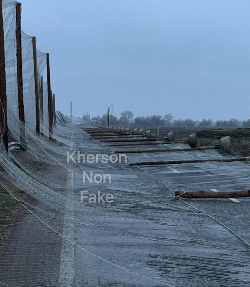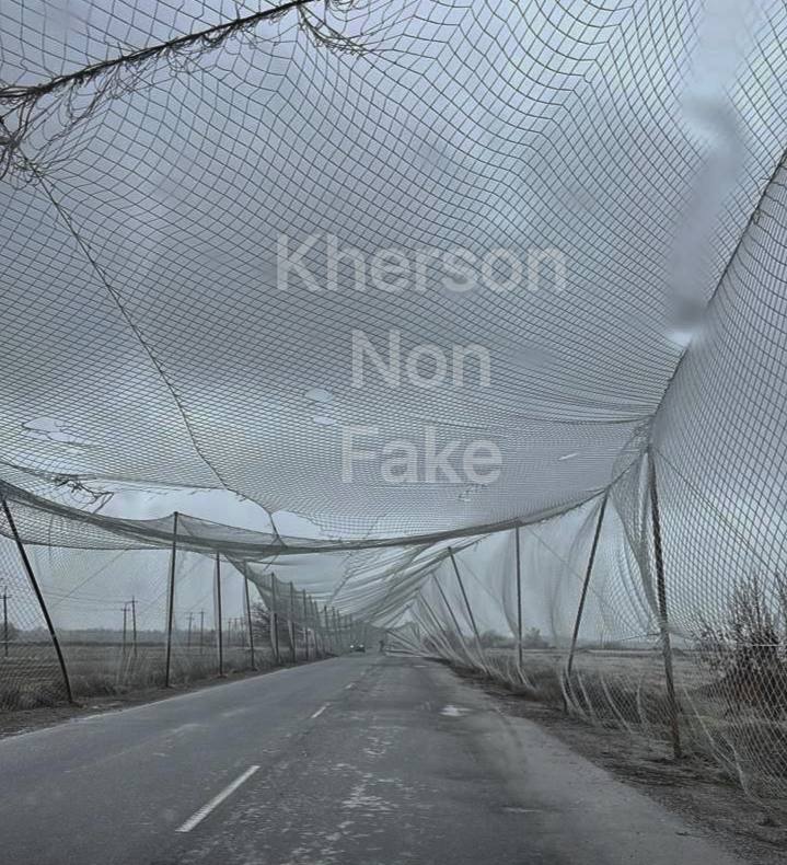 На автодороге М-14 «Николаев — Херсон» временно ограничили движение транспорта. Причиной стало падение столбов с антидроновыми сетками, которое произошло ночью из-за резкого ухудшения погодных условий.