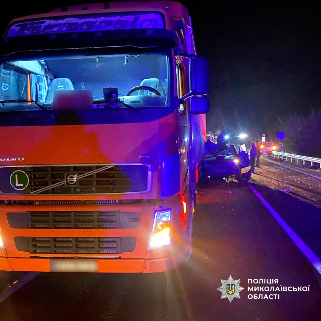 На Одесской трассе под Николаевом легковушка врезалась в грузовик, три человека погибли