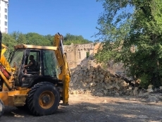 Пока строители уничтожили практически все здание, оставив только часть фасада.