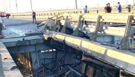 Напомним, ночью, 17 июля, на Крымском мосту произошел взрыв, в связи с чем движение на мосту было остановлено. Российские ТГ-каналы сообщают, что на мосту после взрывов упал пролет.