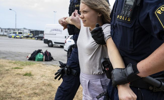 Грет Тунберг и другие активисты были задержаны после того, как 19 июня они остановили движение на нефтяном терминале в порту Мальме.
