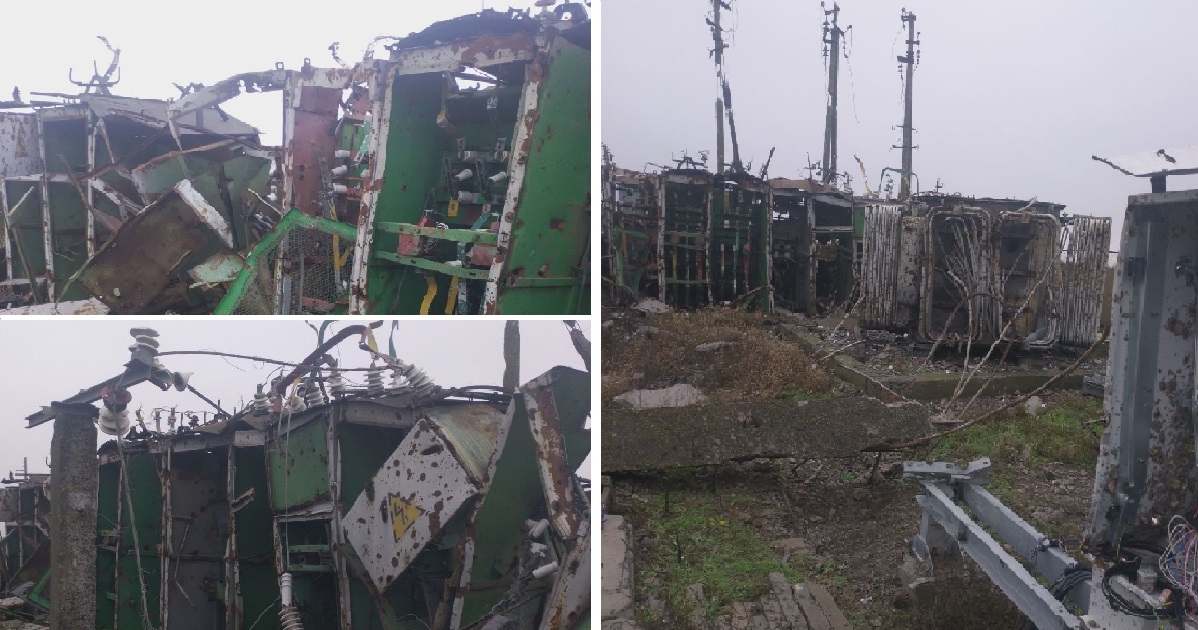 Зруйнована електропідстанція «Нікольська». Фото: «Херсонобленерго»Разрушенная электроподстанция «Никольская». Фото: «Херсоноблэнерго»