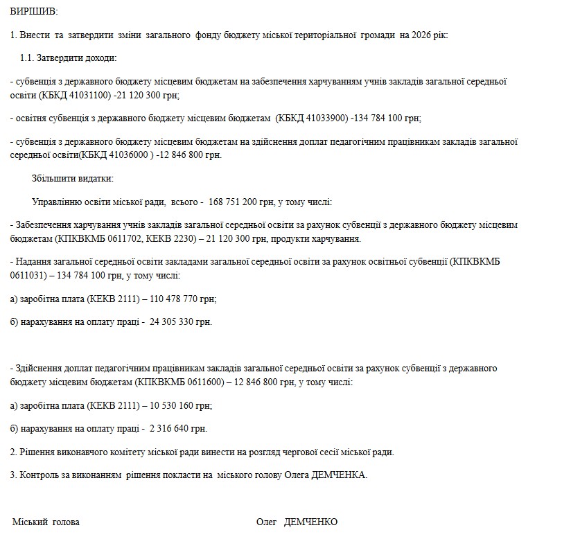 - 12,85 миллиона гривен — субвенция на доплаты педагогам.