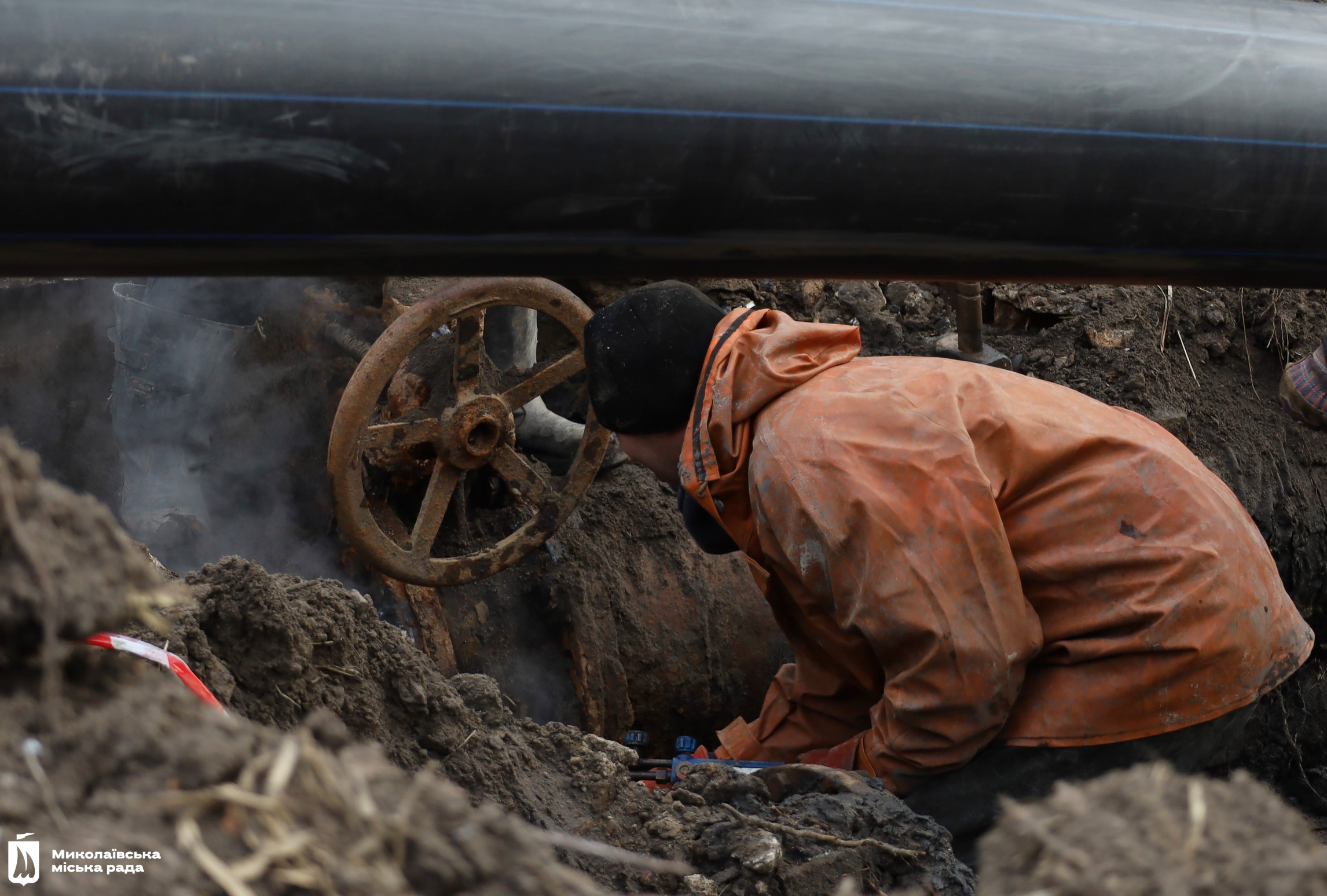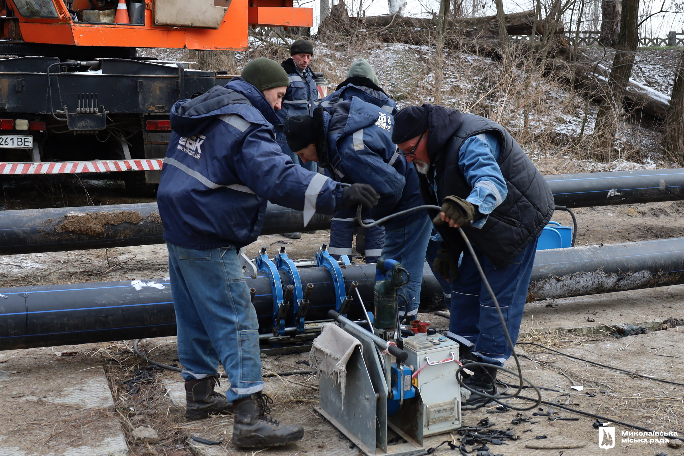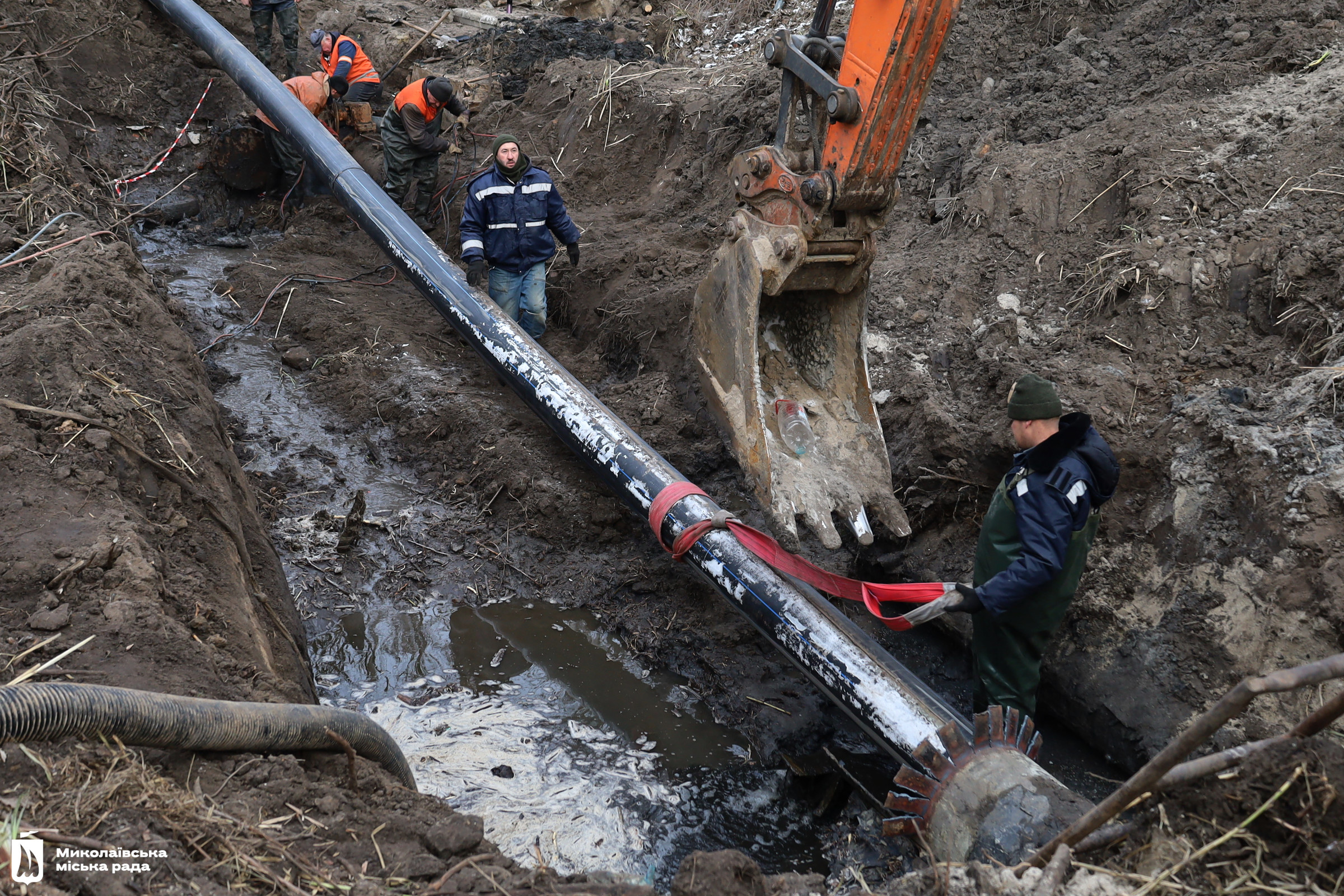 Работники компании «ВиК-Технологии» вместе с водоканалом ликвидируют аварию на дюкере в Соляных. Фото: горсовет11 января в Николаеве из-за аварии на водопроводе прекратили водоснабжение в микрорайонах Соляные, Северный и Терновка.