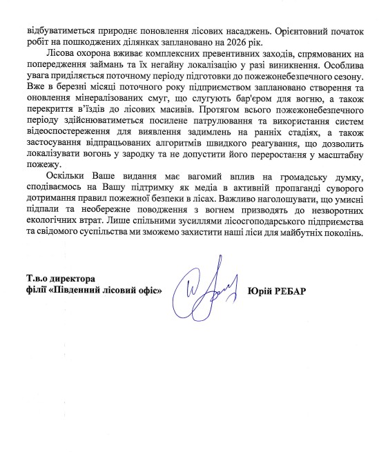 Об этом сообщили в филиале «Южный лесной офис» госпредприятия «Леса Украины» в ответе на запрос «НикВести».